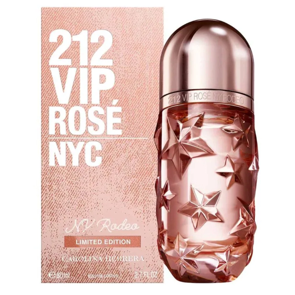 212 VIP Rosé Rodeo de Carolina Herrera é um perfume Floral Frutado Feminino. Esta é uma nova fragrância. 212 VIP Rosé Rodeo foi lançada em 2025. As notas de topo são: Frutas Vermelhas e Champanhe. A nota de coração é Peônia. As notas de fundo são: Patchouli e Notas Amadeiradas.