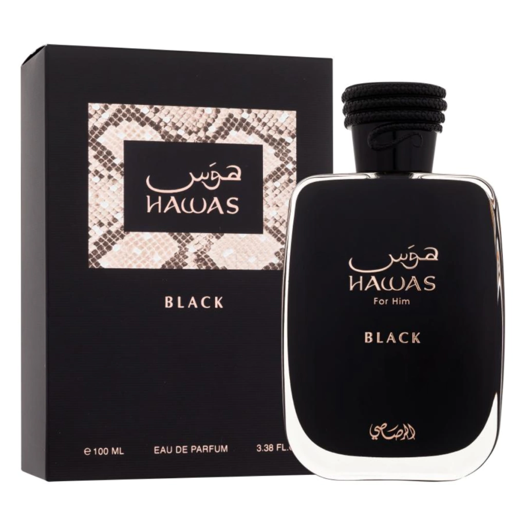 Hawas Black de Rasasi é um perfume Aromático Frutado Masculino. Esta é uma nova fragrância. Hawas Black foi lançada em 2024. As notas de topo são: Bergamota, Abacaxi e Toranja. As notas de coração são: Patchouli, Cedro e Jasmim. As notas de fundo são: Musgo de Carvalho, Notas Amadeiradas e Âmbar.