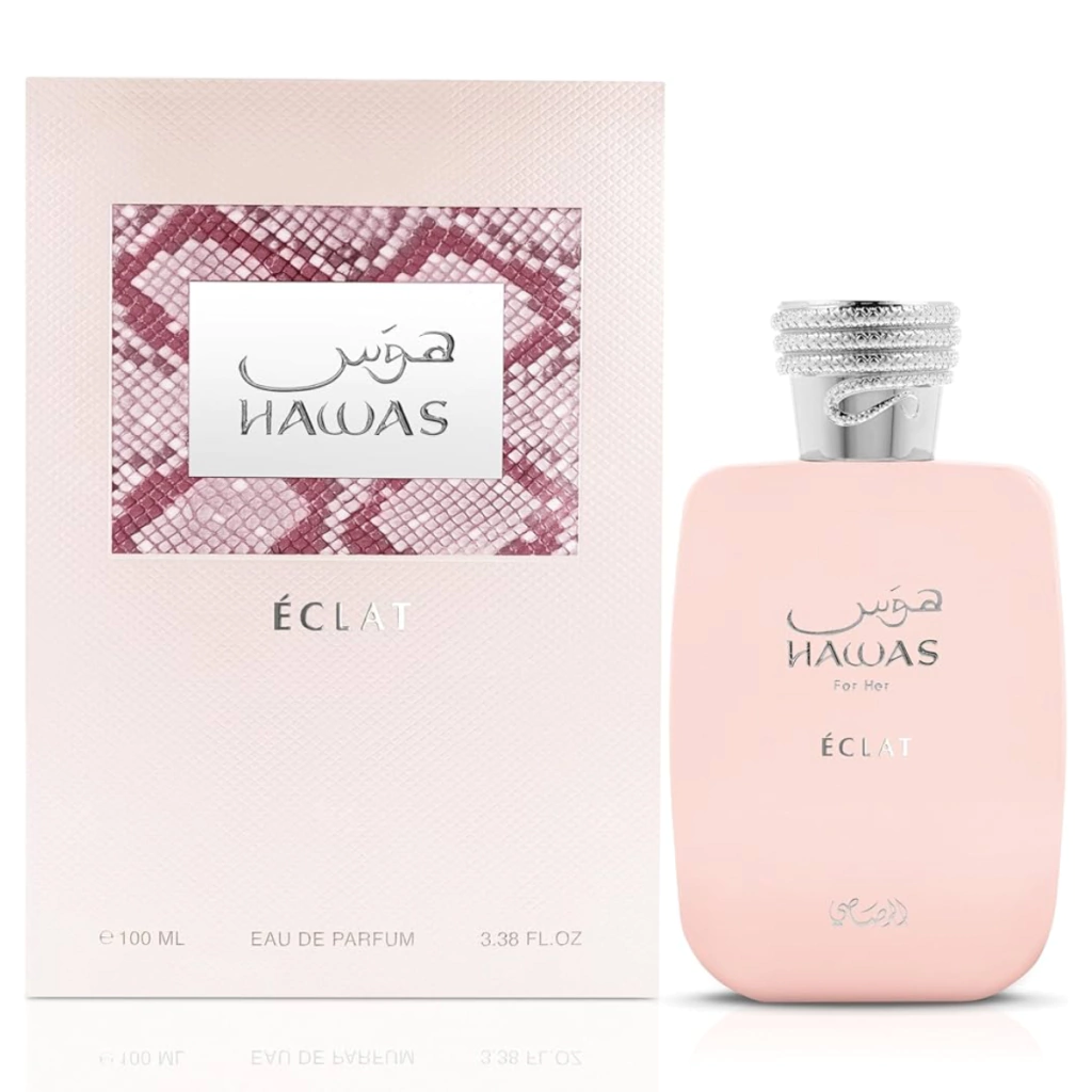 Eclat de Rasasi é um perfume Oriental Floral Feminino. Esta é uma nova fragrância. Eclat foi lançada em 2025. O perfumista que assina esta fragrância é Amandine Galliano. As notas de topo são: Lichia, Bergamota, Pera e Pistache. As notas de coração são: Rosa e Incenso. As notas de fundo são: Baunilha, Almíscar, Âmbar e Notas Amadeiradas.