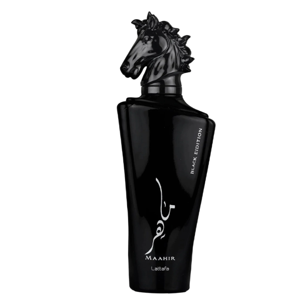 Maahir Black Edition de Lattafa Perfumes é um perfume Âmbar Especiado Compartilhável. Maahir Black Edition foi lançada em 2019. As notas de topo são: Pimenta Preta, Açafrão e Pimenta Rosa. As notas de coração são: Ládano, Cade lubrificam, Bálsamo de Gurjan e Ruibarbo. As notas de fundo são: Couro, Patchouli ou Oriza, Cedro, Madeira Guaiac, Almíscar e Musgo.
