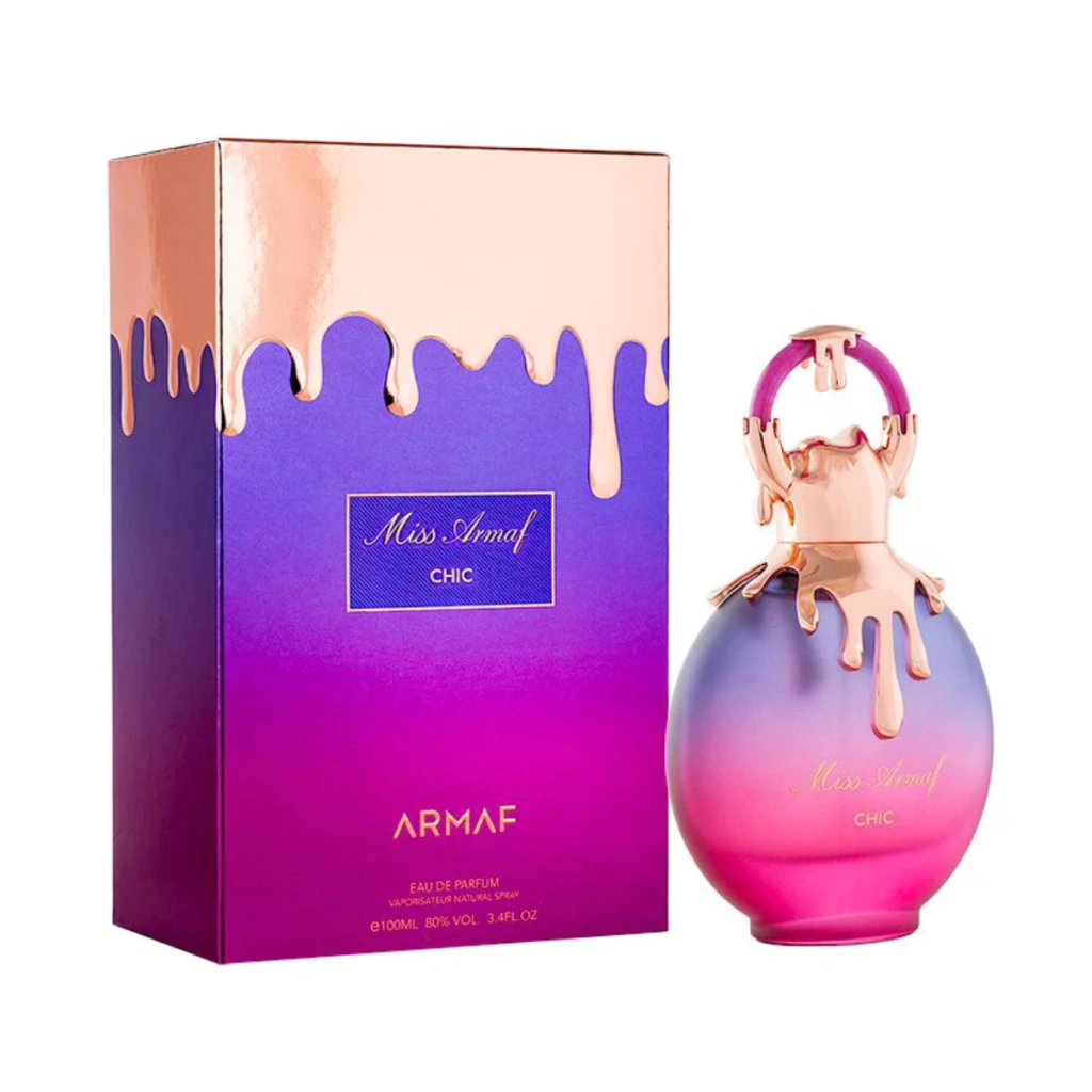 Chic de Armaf é um perfume Feminino. Esta é uma nova fragrância. Chic foi lançada em 2023. As notas de topo são: Framboesa, Tangerina, Bergamota, Morango, Pera, Laranja e Calone. As notas de coração são: Jasmim, Peônia e Flor de Laranjeira. As notas de fundo são: Patchouli, Cedro, Almíscar, Ambroxan, Musgo e Baunilha.