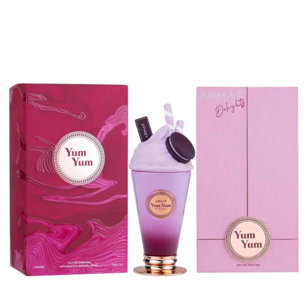 Yum Yum de Armaf é um perfume Floral Frutado Feminino. Esta é uma nova fragrância. Yum Yum foi lançada em 2024. As notas de topo são: Frutos Silvestres, Cereja, Laranja e Bergamota. As notas de coração são: Baunilha, Flores Brancas e Rosa. As notas de fundo são: Notas Atalcadas, Almíscar e Âmbar.